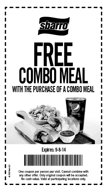 Sbarro is offering buy 1 Combo Meal and get 2nd meal for FREE with this printable coupon for a limited time. Coupon expires September 8, 2014. [Store locator]