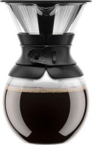 The Bodum Pour Over Coffeemaker creates a clean, rich cup of coffee in just 3 – 4 minutes. It features a mouth-blown borosilicate glass carafe and a permanent filter. Use the stopper to help keep extra coffee warm while you enjoy your beverage.