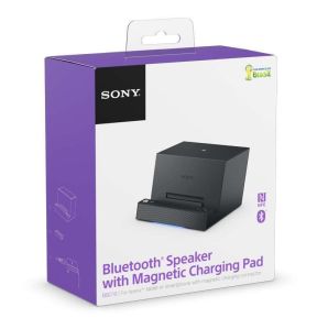 The Sony Bluetooth Speaker with magnetic charging pad features NFC pairing and is designed to wirelessly charge compatible Sony Xperia tablets and smartphones.