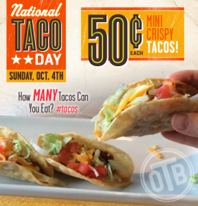 Today only, Oct 4, 2017, participating On The Border locations is offering mini tacos for 50-cents each in celebration of National Taco Day. [Store Locator]