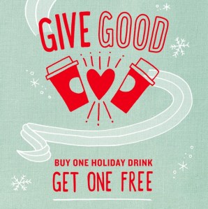 Starting Today, Nov 9, 2017, between 2 pm and 5 pm local time, Starbucks is offering buy 1 get 1 FREE of any of their holiday beverages until November 13, 2017. Choose from favorites like the Caramel Brulee Latte, Holiday Spice Flat White, Peppermint Mocha, Eggnog Latte, Chestnut Praline Latte, and Gingerbread Latte. [Starbucks locator]