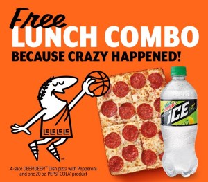 Today only, Apr 2, 2018, from 11:30 am to 1 pm, Little Caesars is offering their Lunch Combo for FREE. Lunch combo includes 4-slice DEEP!DEEP! Dish pizza with pepperoni and one 20 oz. Pepsi-cola. No purchase necessary. [Store Locator]