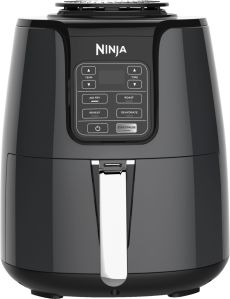 The Ninja Air Fryer features a family-sized 4-quart ceramic-coated basket, wide temperature range (105°F–400°F), and programmable controls (air fry, roast, reheat, and dehydrate) for circulation of hot air around your food for quick, crispy, and golden finishes, every time.