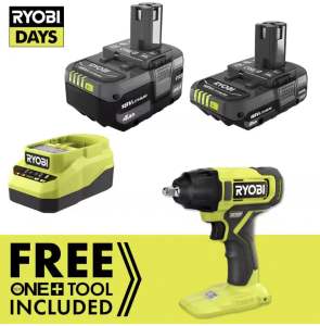 Home Depot has the Ryobi ONE+ 18V Cordless 3/8″ Impact Wrench bundled with a FREE 4.0 Ah and 2.0 Ah Lithium-Ion Battery and Charger for $99 (retails for $99 for the tool itself w/o batteries and charger) with Free Shipping for a limited time.
