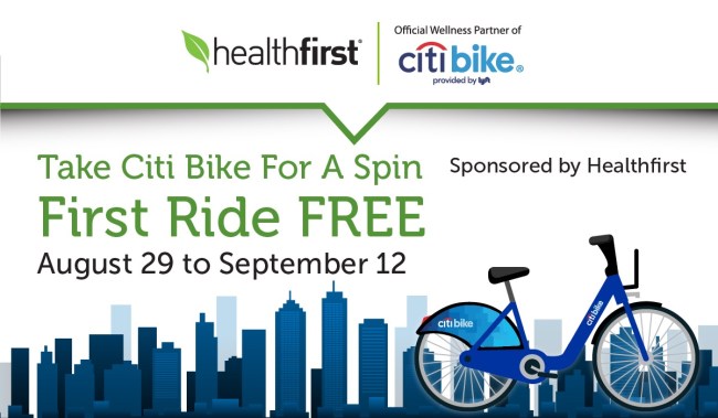 CitiBike is has partnered with Healthfirst to offer FREE 30-minute Classic bike ride to Citi Bike first-timers for a limited time. To get this offer: download the Citi Bike app, tap the First Ride Free, presented by Healthfirst pass, and follow the instructions to complete your registration and how to unlock a Citibike. Only brand-new users of Citi Bike and the app can sign up for this promotion. Offer ends September 12, 2020.