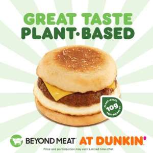Dunkin’ is celebrating the nationwide rollout of their Beyond Sausage Breakfast Sandwich by offering it for FREE this Friday and Saturday from 8am to 10am, while supplies last.