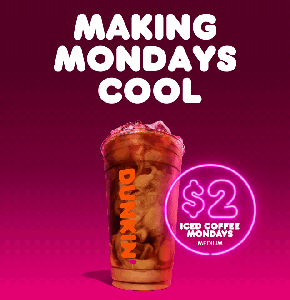 $2 Medium Ice Coffee Every Monday at Dunkin’ for All of May