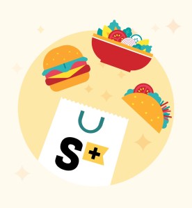 Grubhub+ unlimited offers free delivery on orders of $12+ from GH+ restaurants, members-only deals for free food or discounts, Grubhub charity donation matching, and Free monthly $10 pick-up meal in select markets.