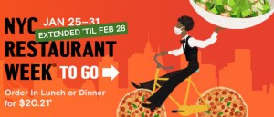 NYC Restaurant Week To Go – Till 2/28/2021 – Lunch or Dinner for $20.21 – Get a $10 Mastercard Credit