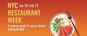 NYC Restaurant Week from 1/18 – 2/13/2022 – Two-Course Lunch, Three-Course Dinner, $10 Off $39 w/ Mastercard (10x)