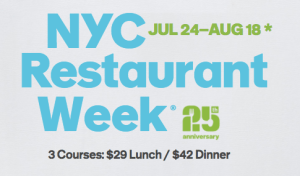 NYC Restaurant Week is coming up again, from January 21 to February 9, 2020, enjoy special two-course prix-fixe lunch for $26 and three-course prix-fixe dinner for $42 at participating restaurants. Tables fill up fast, make your reservation today.