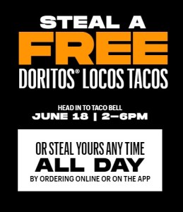 Today: FREE Taco Bell Doritos Locos Taco – 6/18/2019, 2-6PM